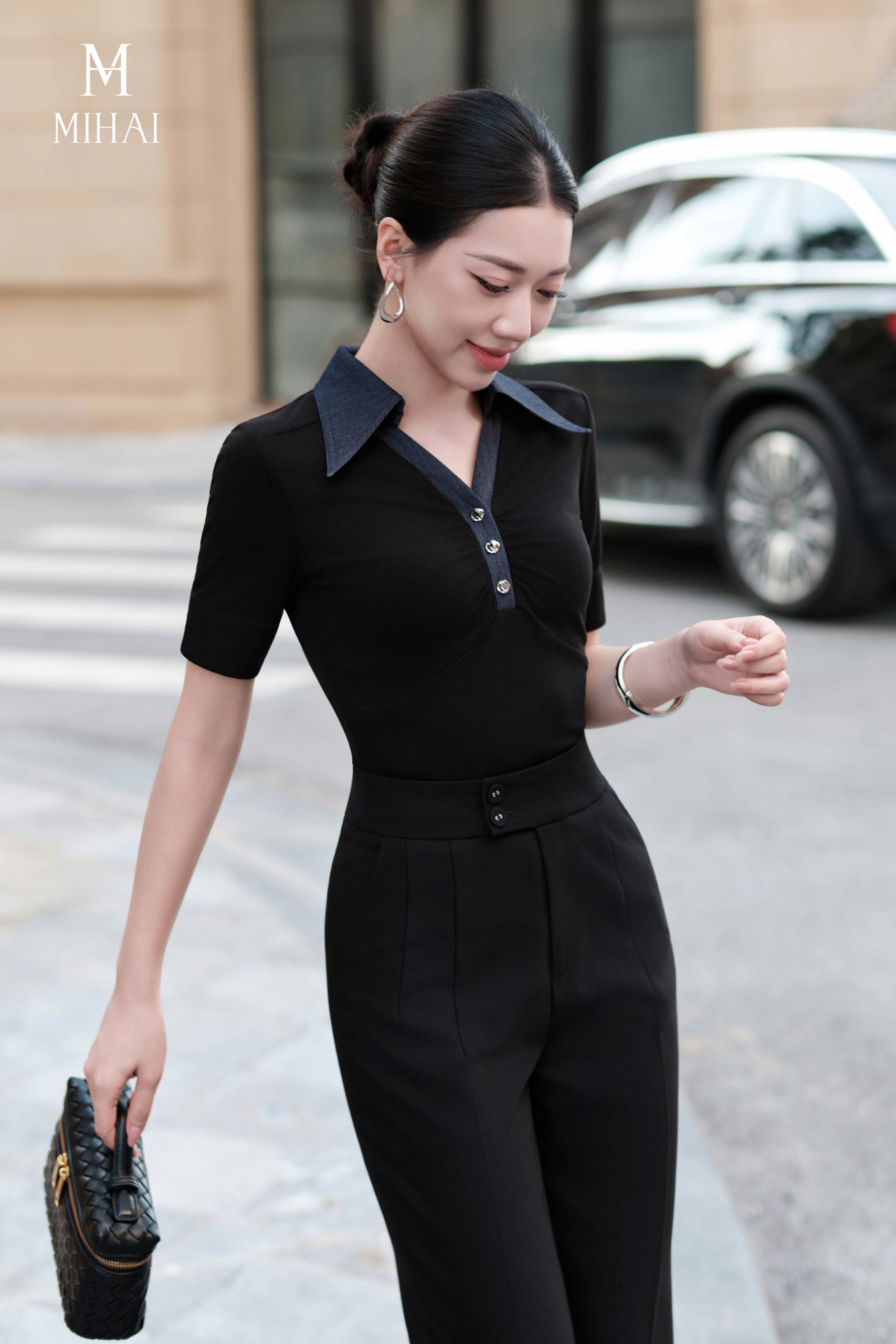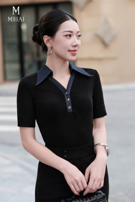 Mô tả sản phẩm : Áo được nhấn bởi hàng cúc khảm đen mạ vàng cao cấp, giúp tôn vẻ tinh tế của sản phẩm.