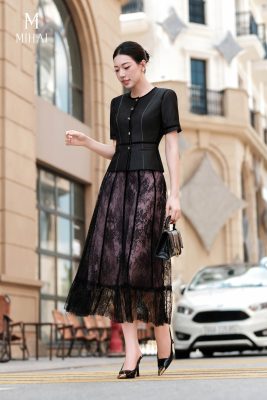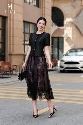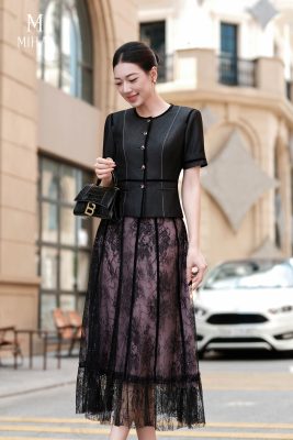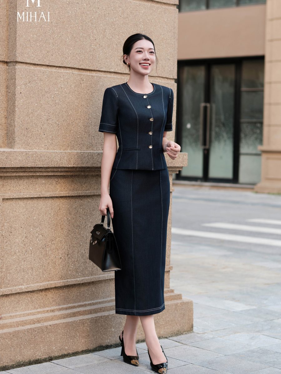 Mô tả sản phẩm : Áo được nhấn bởi hàng cúc khảm đen mạ vàng cao cấp, giúp tôn vẻ tinh tế của sản phẩm.