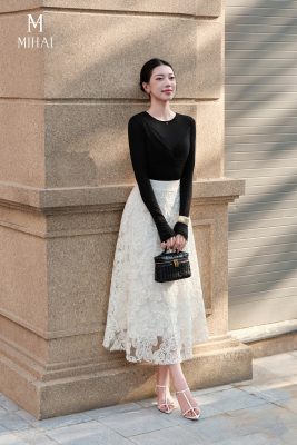 Mô tả sản phẩm : Chân váy được hãng thiết kế chữ A xòe ốp nhung đen tạo điểm nhấn sang trọng kèm tùng nhún giúp nàng nữ tính, bí ẩn thu hút mọi ánh nhìn.